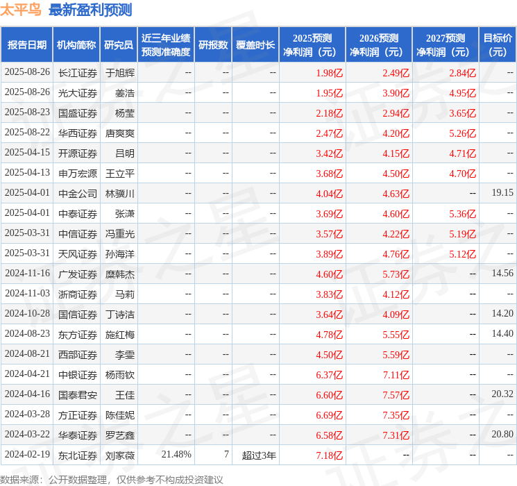 最新盈利预测明细如下: